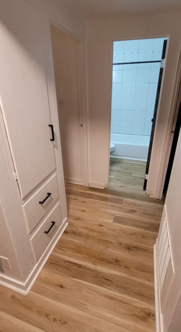 Now leasing - remodeled 1 bed, 1 bath apartment! Discover the perfect blend of comfort and convenience in this stylish 1-bedroom, 1-bath modern apartment. Featuring sleek hard floors throughout, the open layout creates a clean and contemporary feel that’s easy to maintain. In addition to the new flooring throughout, you'll find an updated bathroom with full tile surround, new kitchen cabinets with a quartz countertop! Let's not forget the newer appliances! Enjoy the added ease of onsite laundry facility and the peace of mind of convenient parking just steps from your door. The owner provides 24-hour security surveillance, garbage, monthly pest control preventative, lawncare and snow removal!